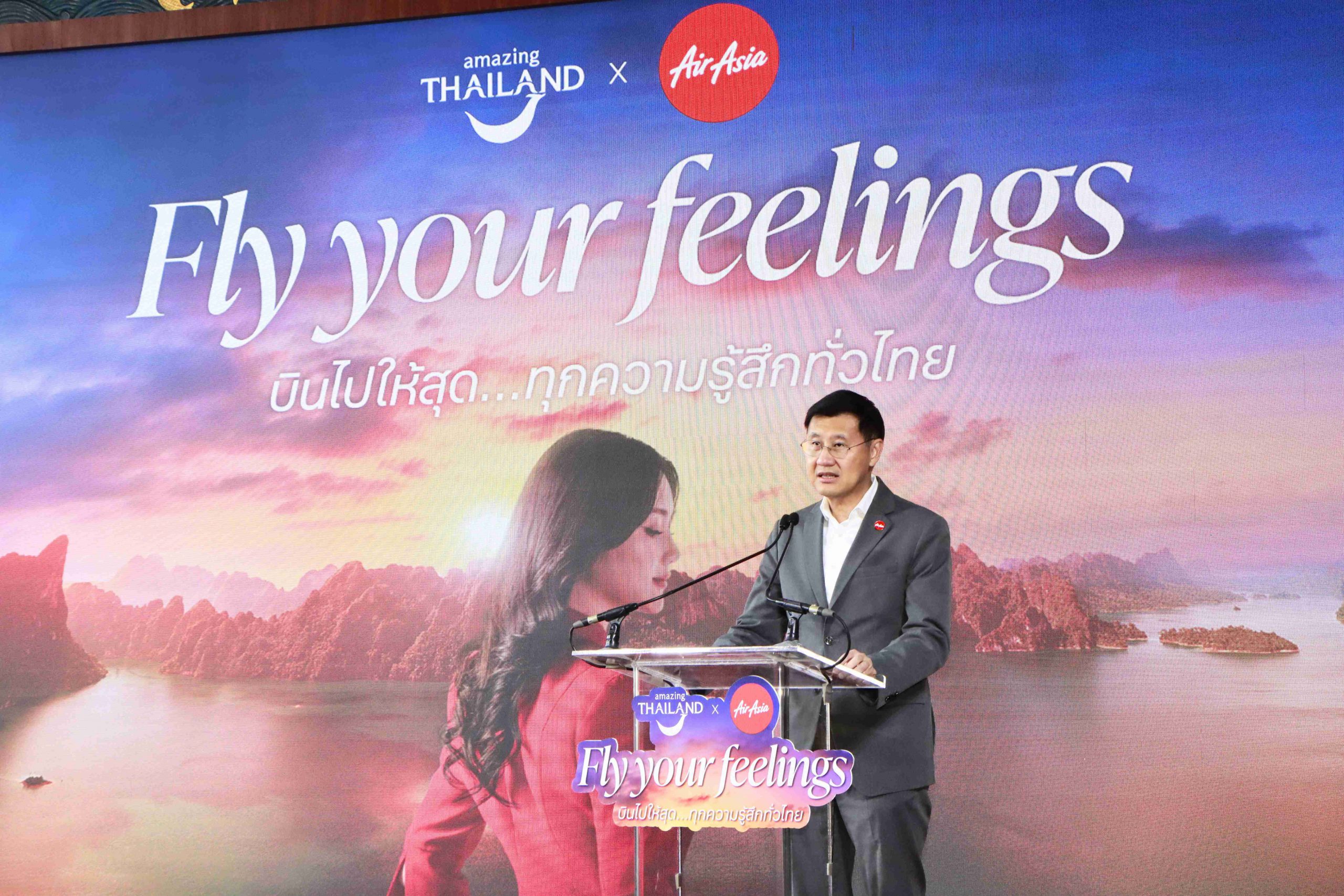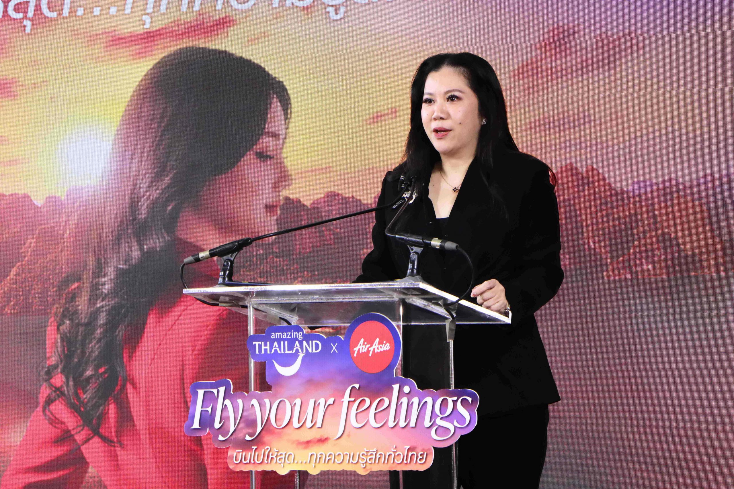 นางสาวฐาปนีย์ เกียรติไพบูลย์ ผู้ว่าการ ททท. เปิดเผยว่า ความร่วมมือกับสายการบินไทยแอร์เอเชียครั้งนี้ ดำเนินภายใต้โครงการ “FLY YOUR FEELINGS บินไปให้สุด..ทุกความรู้สึกทั่วไทย” ซึ่งเป็นการต่อยอดแคมเปญโฆษณาของ ททท. “Feel all the Feelings” ที่ได้เปิดตัวร่วมกับ ลิซ่า – ลลิษา มโนบาล ในฐานะ Amazing Thailand Ambassador ไปเมื่อต้นเดือนมกราคม 2569 เพื่อจุดประกายแรงบันดาลใจให้เกิดการเดินทางจริง ทำให้ประเทศไทยเป็นจุดหมายปลายทางคุณภาพที่เดินทางได้ง่ายที่สุด สะดวกที่สุด และเข้าถึงได้มากที่สุดในมุมของนักท่องเที่ยวทั้งชาวไทยและชาวต่างชาติ ไทยแอร์เอเชียจึงเป็นกลไกสำคัญในการเพิ่มความสะดวกและการเชื่อมโยงการท่องเที่ยวไทยให้คล่องตัวยิ่งขึ้น ด้วยเครือข่ายบินภายในประเทศ 42 เส้นทาง ครอบคลุม 25 จุดหมายทั่วทุกภูมิภาค ถือเป็นก้าวสำคัญของการผนึกพลังภาครัฐและเอกชน เพื่อขับเคลื่อนเศรษฐกิจท่องเที่ยวอย่างเป็นรูปธรรม